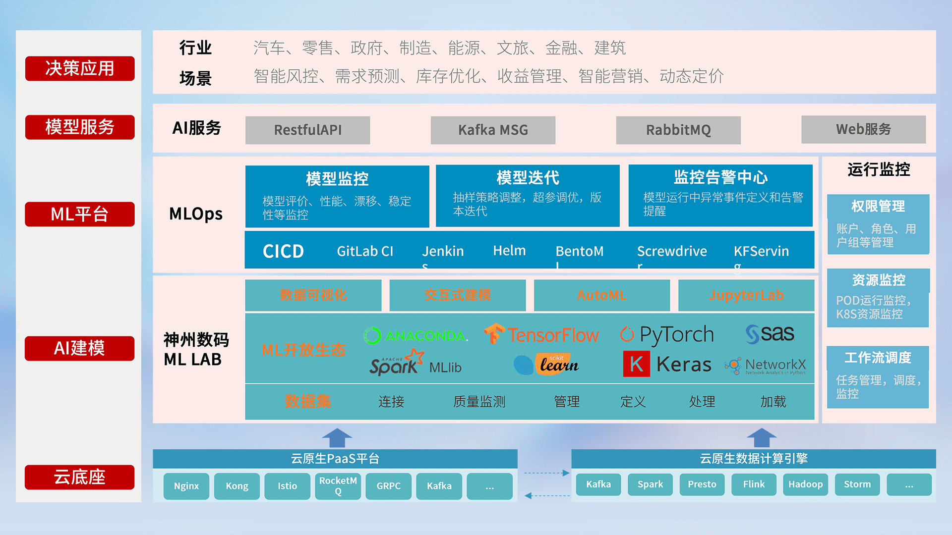 数据+模型双引擎驱动,,,,面向智能服务场景,,,快速灵活利用AI技术,,支持业务决策,,,,助力企业智能化转型破局。。。。